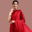• Color :- Red Solid Saree || Red Unstitched Blouse