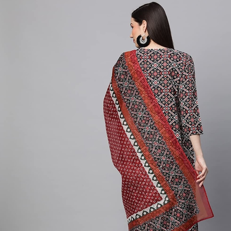 ANNI DESIGNER Women's Cotton Blend Printed Straight Kurta with Pant & Dupatta
