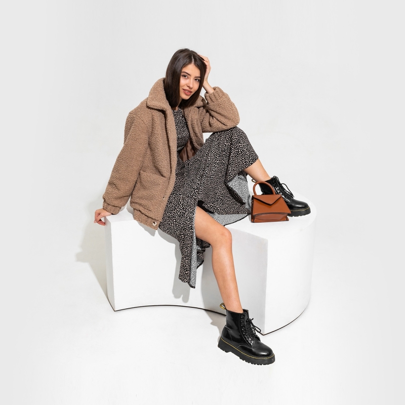 فستان أسود مع نقوش بيضاء منقطة
