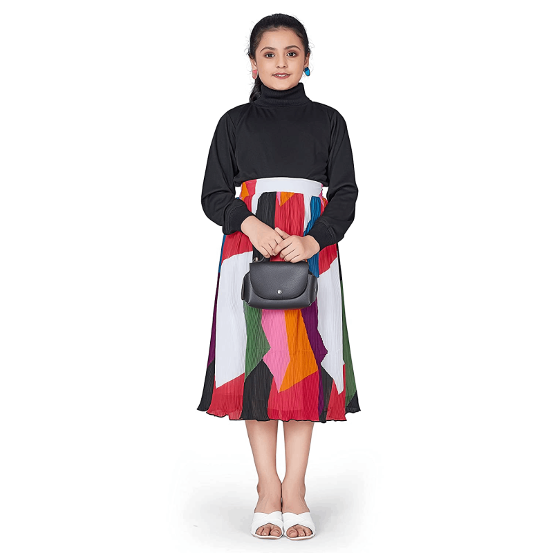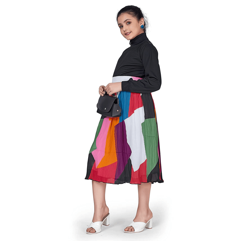 فتاة أوف وايت ليكرا توب مع الأكورديون مطوي جورجيت تنورة مجموعة الملابس