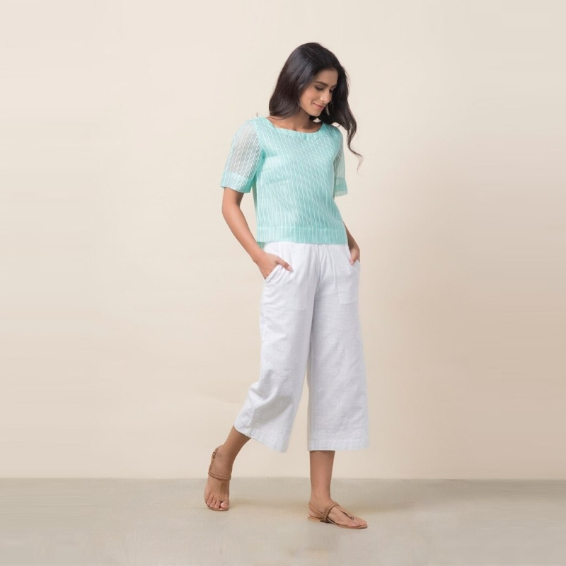 فيسكوز الحرير مخطط بلوزة قصيرة