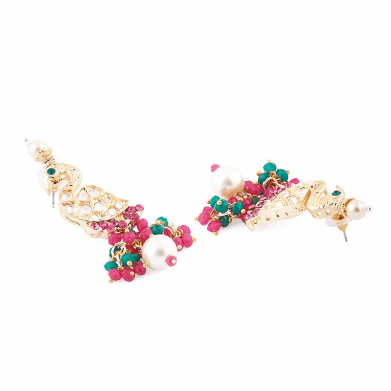 Rani Pink & Green Cluster Beads Kundan Peacock Inspired Necklace